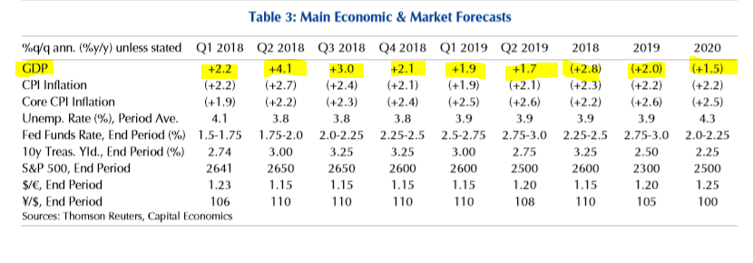 Ausgehend von dem erwarteten Quartalswachstum von über 4% in Q2 2018 wird eine Verlangsamung in Richtung der 1,5% in Q2 2019 möglicherweise als „gefühlte“ Rezession wahrgenommen werden.