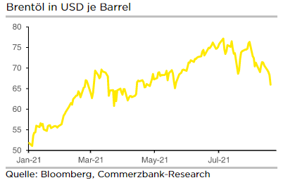 Ende Juli notierte das Rohöl der Sorte Brent bei rund 75 Dollar je Barrel und damit rund 45% über dem Niveau am Jahresanfang. Die dynamische wirtschaftliche Erholung der meisten Volkswirtschaften nach den Pandemierestriktionen ließ die Nachfrage nach Öl kräftig steigen. Die OPEC versuchte das Angebot zunächst relativ knapp zu halten und so war der fulminante Anstieg des Rohölpreises vorprogrammiert. Im Juli einigten sich die OPEC-Staaten auf einen schrittweisen Abbau der bisherigen Förderkürzungen bis Jahresende 2021 und stellten dem Markt somit eine solide Versorgung in Aussicht. Dies führte zu der jüngsten Preiskorrektur (aktuell 65,40 Dollar je Barrel). Verstärkend für den Preisrückgang wirkten die Konjunktursorgen der vergangenen Tage. Die teilweise sehr rasche Ausbreitung der Delta-Variante des Coroanvirus und spürbare Unterbrechungen in den Lieferketten der Industrie, vor allem bei Microchips, lassen die zukünftige konjunkturelle Entwicklung in einem weniger positiven Licht erscheinen.