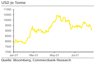 Nachdem der Kupferpreis am Beginn des Sommers die Marke von 10.000 Dollar je Tonne überschritten hatte, befindet er sich seit einigen Wochen in einer Korrekturphase und kostete erstmals seit April wieder weniger als 9.000 Dollar. Die Korrektur war nach dem starken Anstieg der Monate davor überfällig. Als Hauptursache für die Preiskonsolidierung beim Kupfer sehen wir den konjunkturell bedingten Nachfragerückgang aus China. Dort sehen wir aktuell einen Normalisierungsprozeß der wirtschaftlichen Entwicklung. China erzielte auch im „Corona-Jahr“ 2020 ein positives Wirtschaftswachstum und konnte den Absturz der Wirtschaft im Corona-Lockdown im Frühjahr 2020 sehr schnell ausgleichen. Das Reich der Mitte ging dabei den Weg, die Wirtschaft über landesweite, gezielte Infrastrukturprojekte zu stimulieren. Daher auch die hohe Nachfrage nach Kupfer. Mittlerweile befindet sich die Konjunktur (von der KP so gesteuert), wie bereits erwähnt, auf dem Normalisierungspfad.