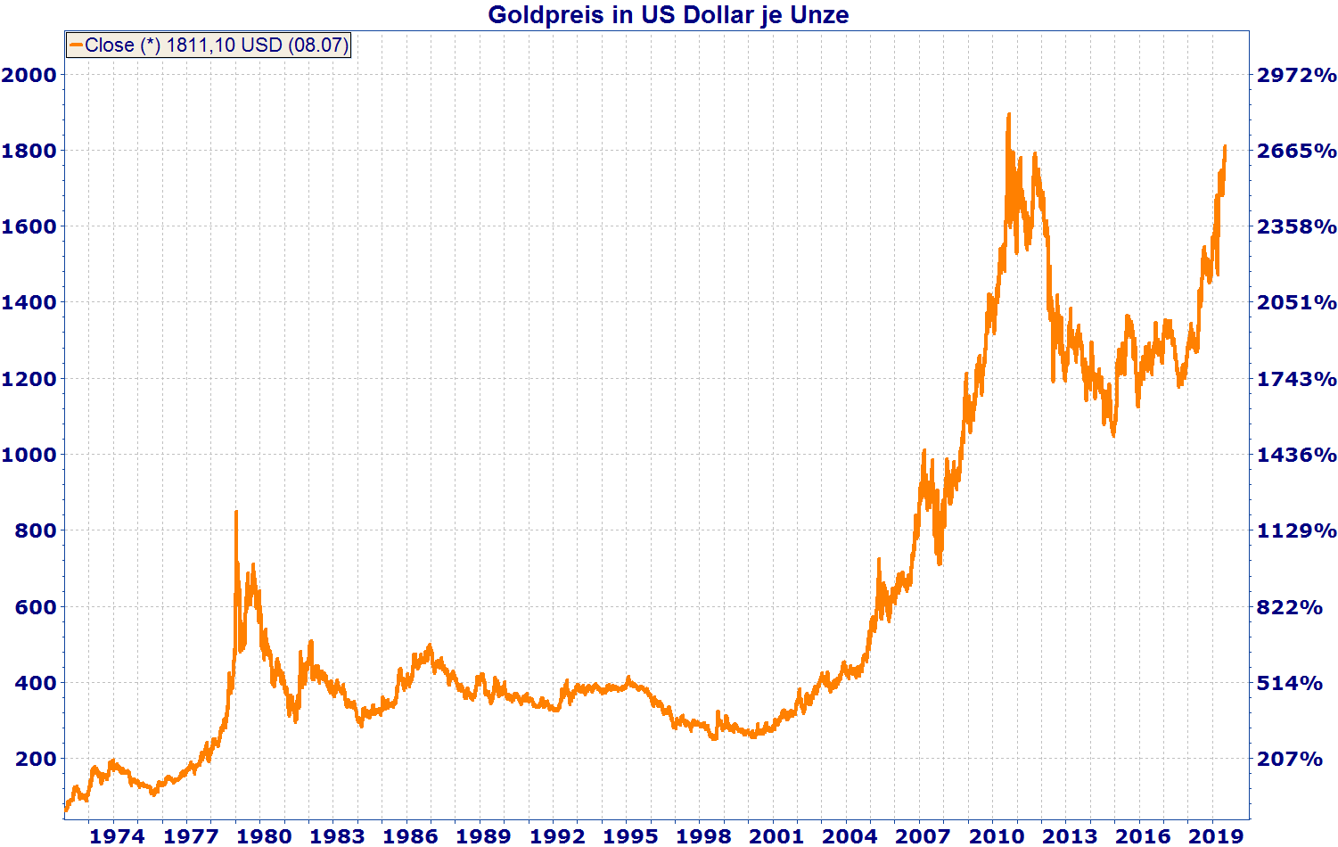 Erstmals seit 2011 ist der Goldpreis vergangene Woche wieder über die Marke von 1.800 Dollar je Feinunze (= 31,103 Gramm) gestiegen. Bereits am 30.04.20 beschrieben wir in dem Beitrag auf unserer Homepage: „Goldminenaktien mit aussichtsreicher Perspektive“ die Marktlage zum Gold und den Goldproduzenten.